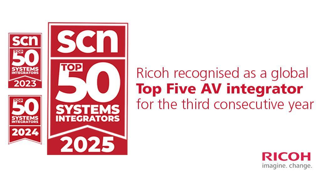 凭借持续的增长和卓越的全球交付能力,理光在SCN 2025年全球50强音视频集成商榜单中位列第四——这是连续第三年位居全球前五该榜单提供了视听行业的年度概览,重点介绍了为全球不同垂直市场提供解决方案的顶尖公司。排名基于上一财年的销售额及本财年企业视听系统安装的预期收入。理光持续位居前五,反映了其旨在满足日益增长的高级视听和协作解决方案需求的战略投资与合作伙伴关系。